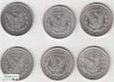 серебряные доллары морган-6 штук. очень хорошее состояние.