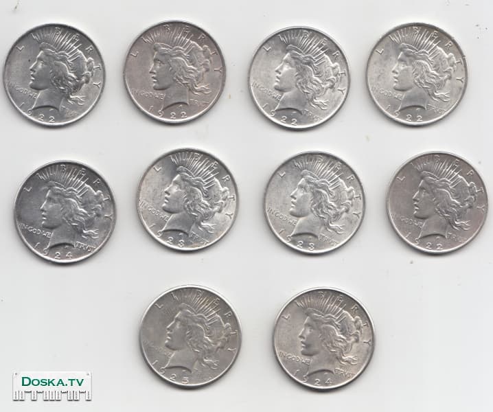серебряные доллары пис-10 штук. очень хорошее состояние.