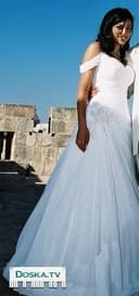 Свадебное платье изящного дизайна, сшитое по специальному заказу из самых высококачественных материалов. размер 36-38 Изначальная цена платья 10000 шек. продаeтся за 1800 шек.