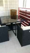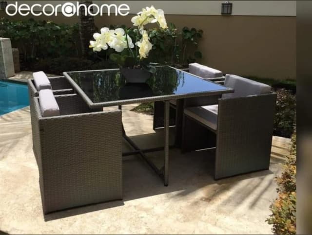 стол с 4 креслами из ратена и стекла на балкон или в сад.