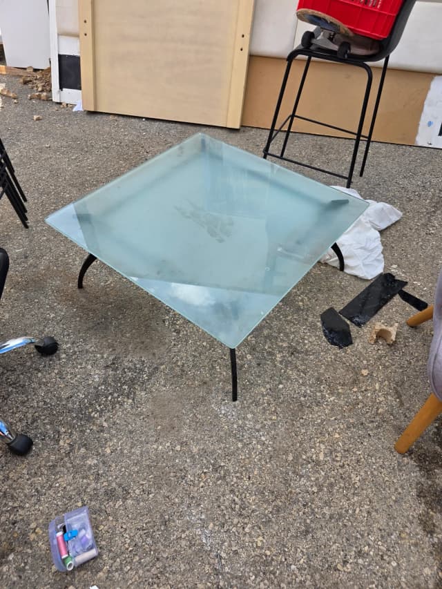 стол в нормальном состоянии база метал столешница стекляная
