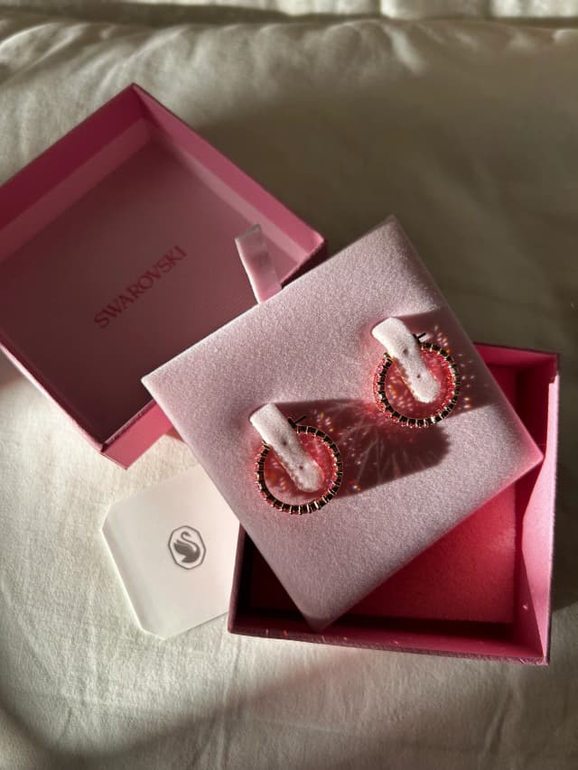 Серьги новые Matrix с блестящим покрытием из розового золота SWAROVSKI Серьги-кольца Matrix из розового золота багетной огранки с покрытием из розового золота.