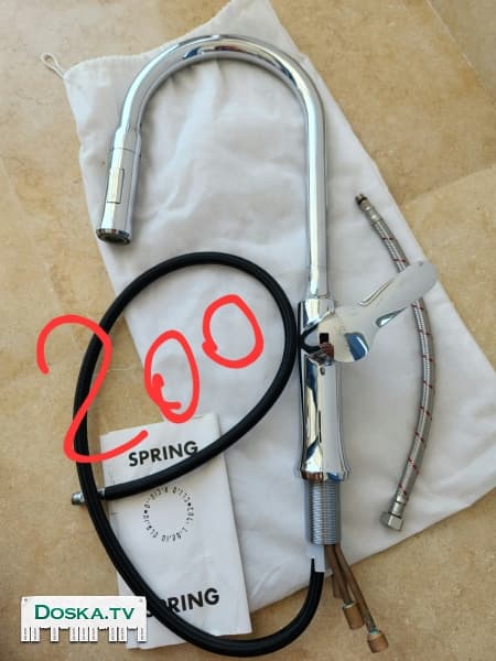 Новый кран Spring в упаковке на кухню, 46x23см. Удобная подвижная головка крана с двумя режимами воды. Отдам по суперцене 200₪, самовывоз граница Бат-Ям/Яффо. Писать/заонить только WatsApp!