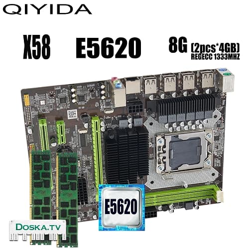 Продам новый рабочий набор: материнская плата Qiyida X58 LGA1366, процессор Intel xeon E5620, оперативная память 2x4GB=8GB 1333MHz DDR3 ECC REG (серверная). Тестируется при продаже. Все удовольствие - 300 шах.