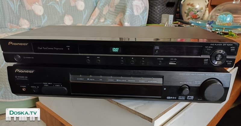 Ресивер 5 каналов по 50 в канал, тюнер FM/AM/RDS, серия slim/8 кг. Проигрывател CD,DVD,RW дисков, с USB накопителя. Полный набор выходов. ТОба аппарата в отличном состоянии.Полный к-т/пульты документация/ Продаётся только комплектом