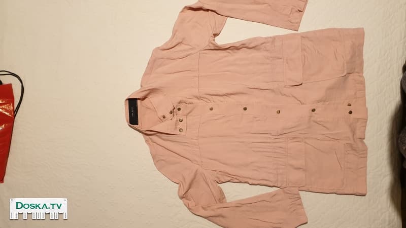 Лёгкая ветровка от ZARA, нежно-розовый цвет, на весну-лето. Без подкладки, застёжка на кнопках, накладные карманы, талия на резинке, можно регулировать изнутри. Размер S. Ткань приятная к телу, шелковистая. Длина - 66 см. Ширина в талии - 100 см. Носила мало, в отличном состоянии, продаю по случаю (стала мала).