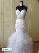 Шикарное новое свадебное платье размер 36-38. Сзади регулируемая шнуровка. Силуэт русалка, ручная работа кристаллами Сваровски. Есть возможность укомплектовать накидкой для хупы и фатой.