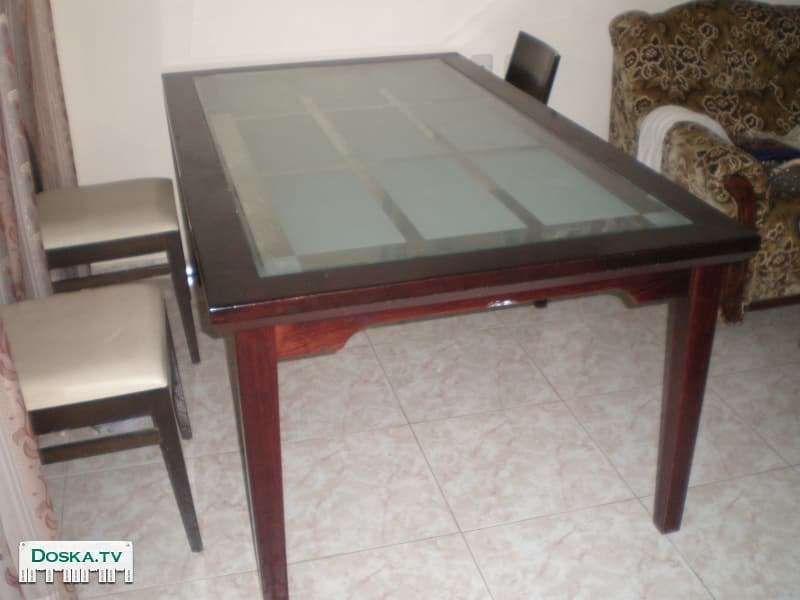 стол обеденный. размер 176х100.столешница из стекла в раме из бука