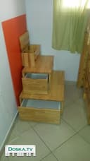 Высокая одинарная кровать из цельного дерева + задвигающаяся тумба + 3 ступеньки/ящики + новый ортопедический матрас (5 мес.) В отличном состоянии. Делали на заказ. Замечательное решение для небольшой комнаты. Длина 205, ширина 88, высота 95
