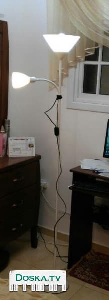 Напольный торшер, 2 плафона, с энергосберегающими лампочками. Состояние - как новый.