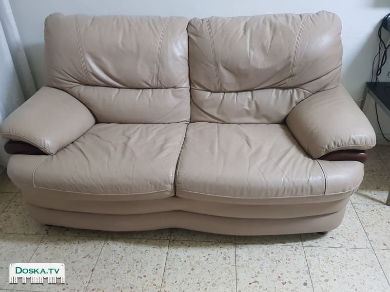 диван двойка + кресло телевизионное натуральная кожа цвет беж, как