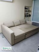 Угловой диван с шезлонгом, раскладывается в двухспальную кровать, есть ящик