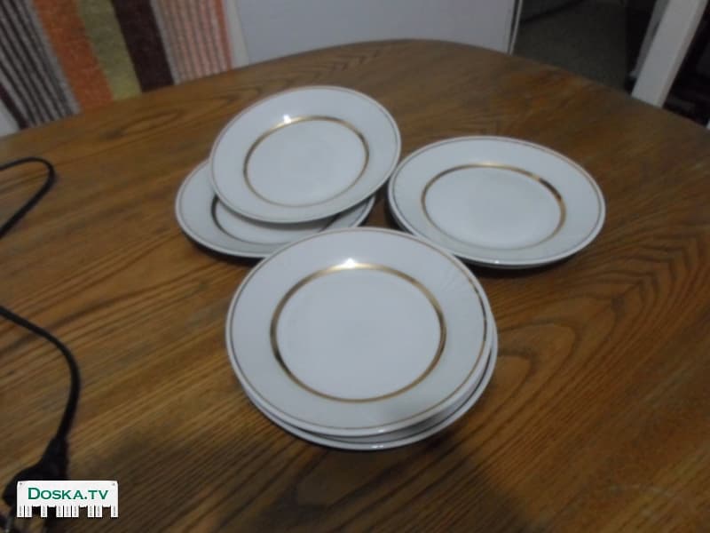 6 закусочных тарелочек с золотым ободком. Совершенно новые.