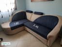 Продам диван из замшевой ткани, в отличном состоянии. Цвет синий с бежевым, размер на фото, раскладывается на 2 спальных места.