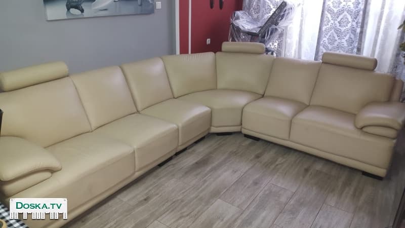 Кожаный угловой салон (Италия).Светло-беж.цвет.Как новый