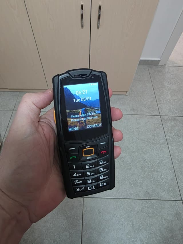 Абсолютно новый, не использовался. Водонепроницаемый IP-68. Батарея 2500 mAh, держит до 2 недель. Поддерживает 4G, есть слоты для 2 SIM карт. Есть докер, с помощью которого можно заряжать телефон, просто поместив его в докер станцию. Есть большой внешний динамик который играет громко и качественно. Есть фонарик. Продаю потому, что покупался для ребенка, а оказался довольно крупным и тяжелым, он скорее подходит мужчине который занимается какими-то физическими работоми или путешественнику, тк долго держит заряд, крепкий и водонепроницаемый. Покупался на AliExpress за 400 шекелей.