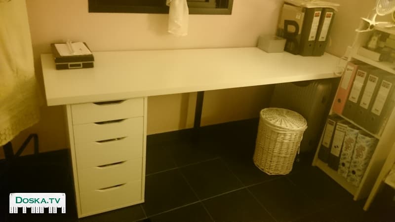 стол письменный с тумбой, белый, большой 200Х60 в хорошем состоянии, может подойти для двоих детей