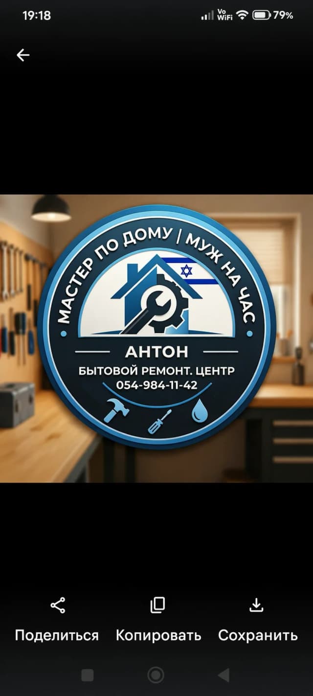 Мастер на час | Муж на час | Бытовой ремонт. ​Нужна помощь по дому? Быстро и качественно решу любые бытовые задачи! Ценю ваше время. ​🚰 Сантехнические работы: ​Замена кранов: установка и замена смесителей, замена гибких шлангов, душевых леек. ​Раковины и мойки: устранение течей под раковиной, ремонт и замена сифонов, обновление герметика и силикона. ​Прочистка засоров: оперативное устранение пробок в раковинах, ваннах и душевых кабинах. ​⚡️ Электрика: ​Замена розеток и выключателей. ​Монтаж люстр, светильников и бра. ​🏠 Мелкий ремонт и прочие услуги по дому: ​Сборка мебели (IKEA и др.). ​Навеска полок, зеркал, картин, карнизов. ​Установка кронштейнов под телевизор. ​Мелкие исправления и любые другие задачи по хозяйству. ✅ Работаю аккуратно, мусор за собой убираю. ✅ Стоимость обсуждаем заранее. ✅ Приезжаю в оговоренное время. ​📍 Районы выезда: Весь центр страны (от Нетании до Ришон-ле-Циона). 🗓️ График: Вс–Чт 8:00–19:00, Пт до захода шаббата. ​📞 Для связи пишите в WhatsApp или звоните