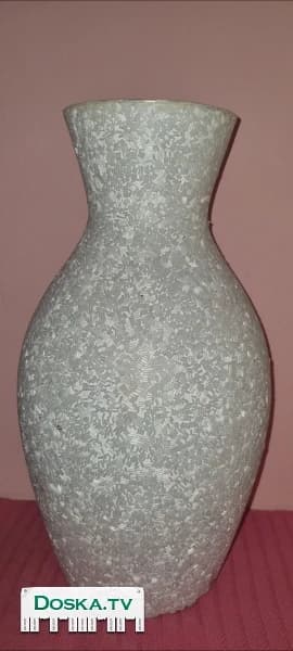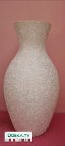 Белая Ваза из стекла и бисера. Высота 50 см Имеет классическую форму с широким основанием и узким горлышком.