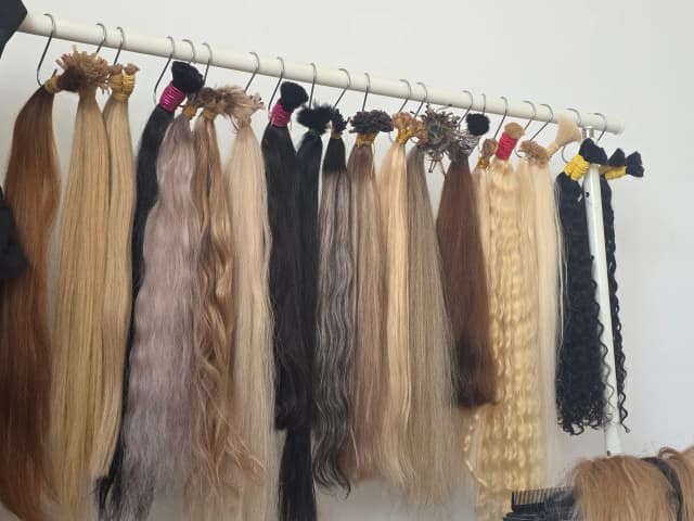 за полный комплект волос (20 хвостов и есть закапсулированые) с кератином (прозрачный, черный и коричневый), плойкой и всеми приспособлениями для работы