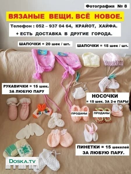 Вязаные вещи. Теплые вещи. Новое всё. Размеры и цены нваписаны на фотографиях. Нахожусь в Крайот, в Хайфа. + Есть доставка в другие города.