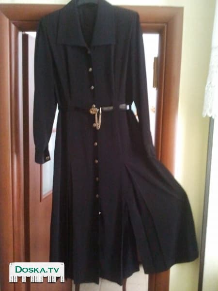 Продам женский тренч (платье-плащ ) черного цвета, добротный плотный щёлк-меши, на пуговицах, с ремнём, карманами в боковых швах, размер 42 (плечи 42 см. талия 80, бедра 108), можно носить как красивое платье -плащ, эльён, на тонкую майку или же поверх любой одежды.звоните в любое время